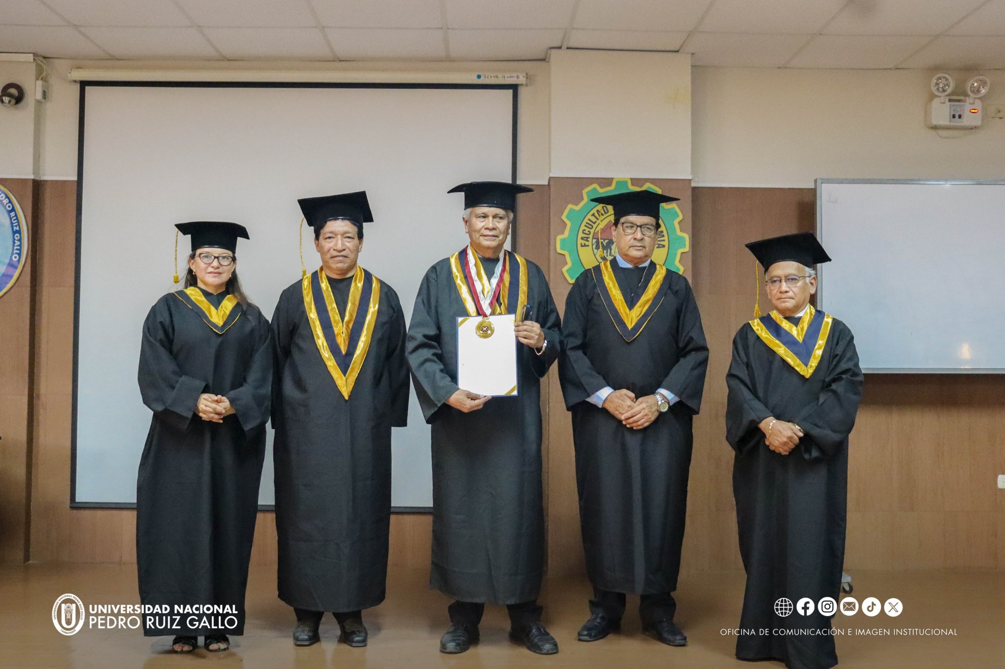 La ceremonia fue presidida por el Rector de la UNPRG, Dr. Enrique Carpena Velásquez, y contó con la participación del Vicerrector Académico, Dr. César Cardoso Montoya, así como de autoridades universitarias, decanos, docentes y estudiantes. Durante el acto, se destacó la importancia de este reconocimiento para la vida universitaria y el compromiso institucional con la excelencia académica, la investigación y el pensamiento crítico.